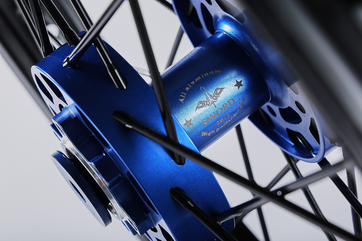 产品名称:竞技轮辋总成 车圈:材质:7116AL T6,前轮:19*2.15"http://后轮:18*2.5",高强度铝制轮圈 花鼓:材质:6061AL T6,前鼓芯:M20*9G*36H//后鼓芯:M20*9G*36H。锻造花鼓 辐条:材质:7075AL T6全铝辐条