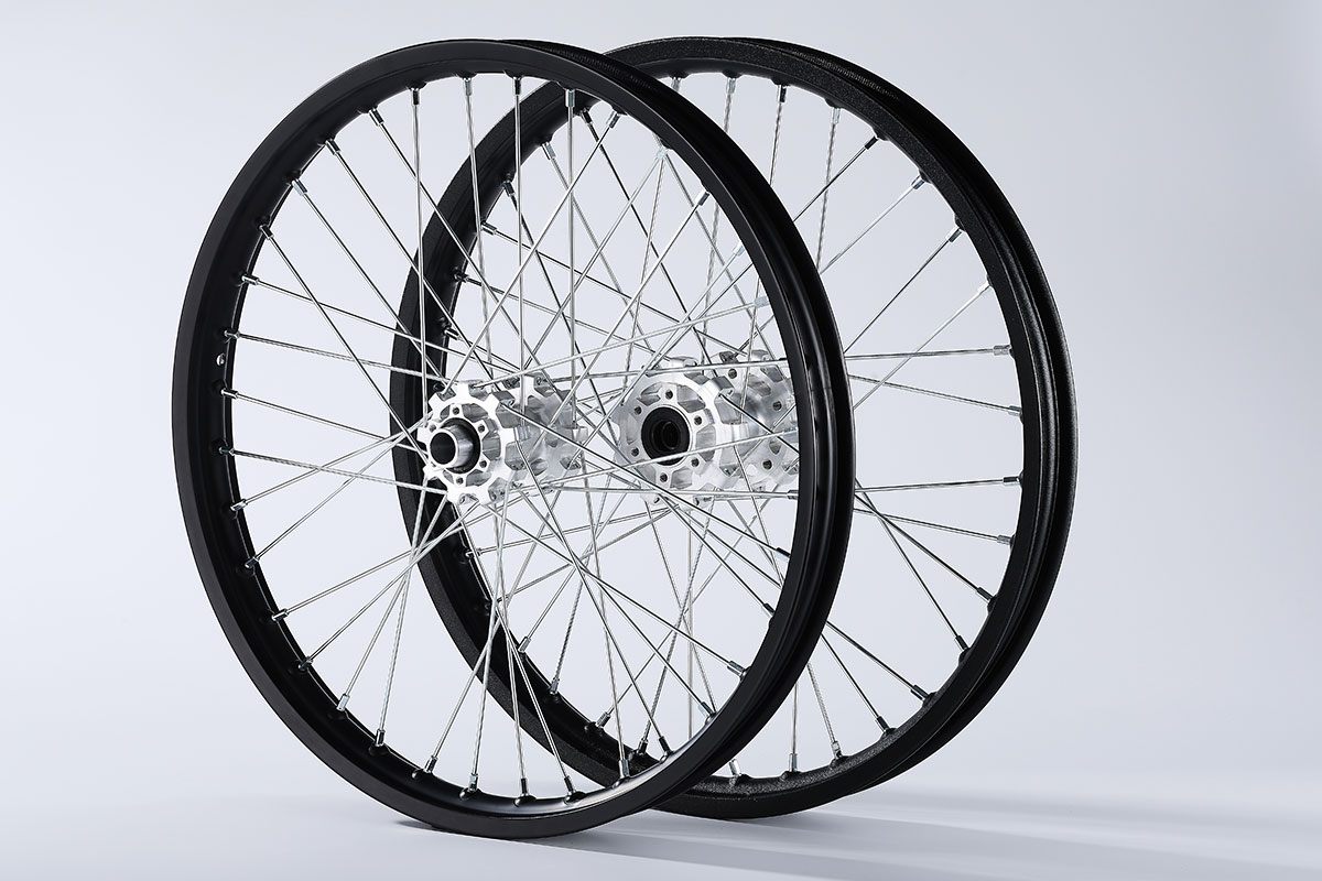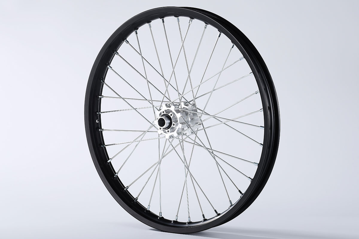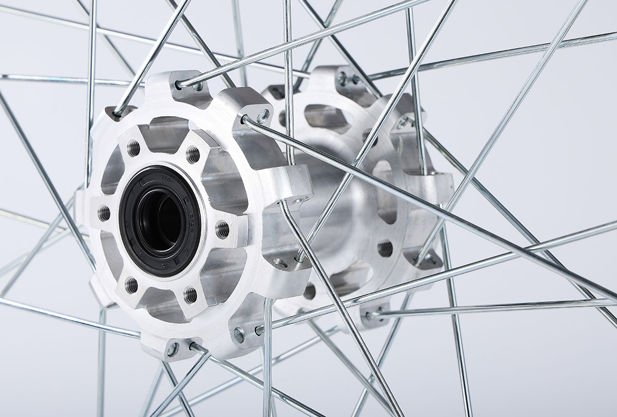 产品名称:竞技轮辋总成 车圈:材质:7116AL T6,前轮:19*1.4"http://后轮:19*1.6",高强度铝制轮圈 花鼓:材质:6061AL T6,前鼓芯:M20*12G*36H//后鼓芯:M15*12G*36H。锻造花鼓 辐条:材质:65MN,配不锈钢条帽,过盐雾测试,防氧化涂层 适配车型:虬龙轻蜂/探骊毒刺系列