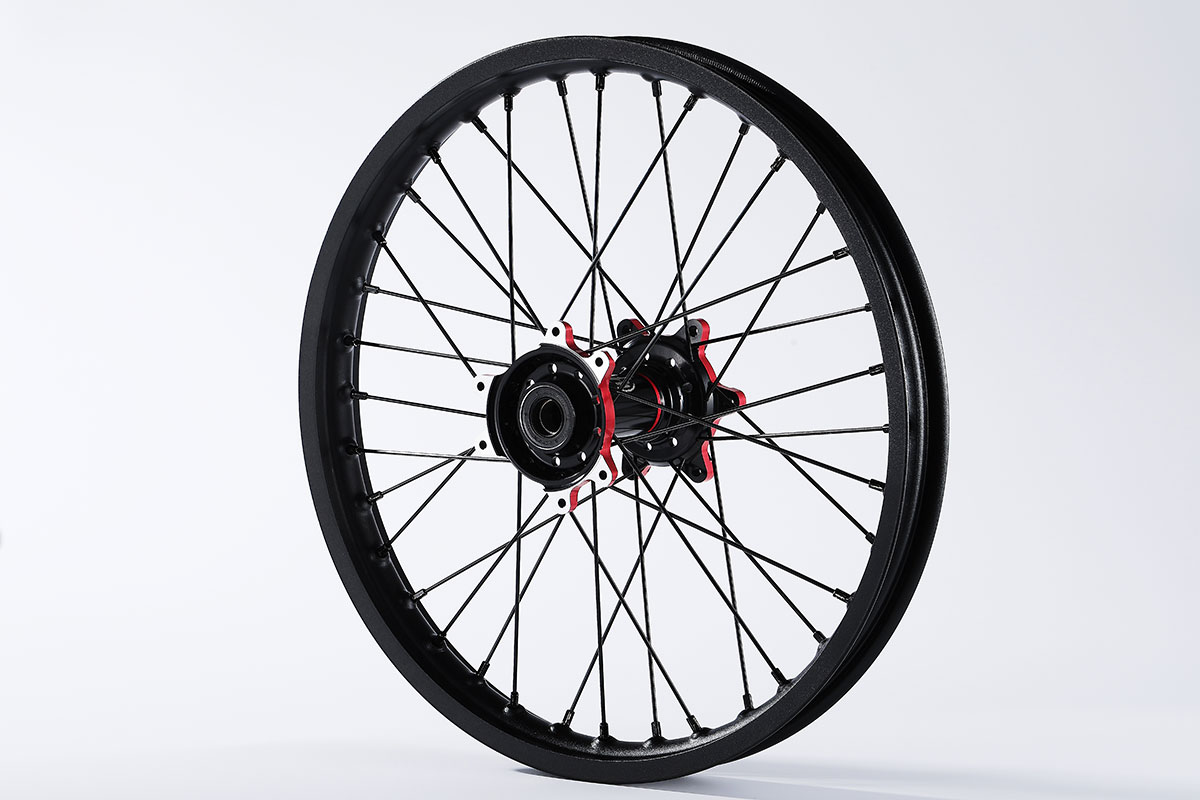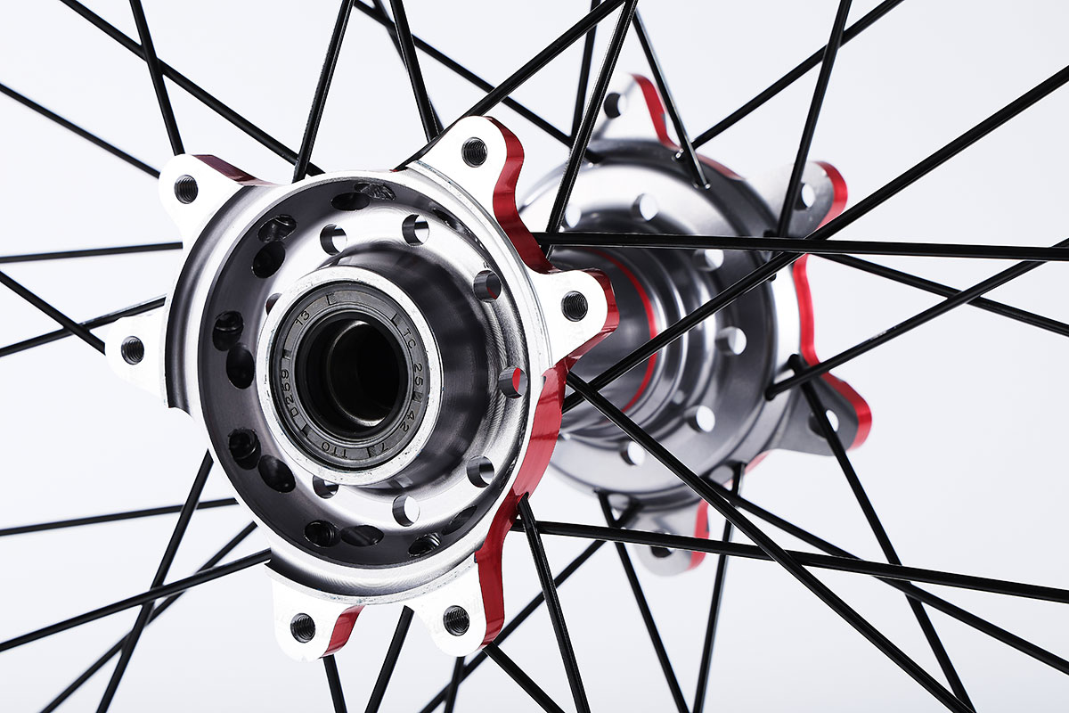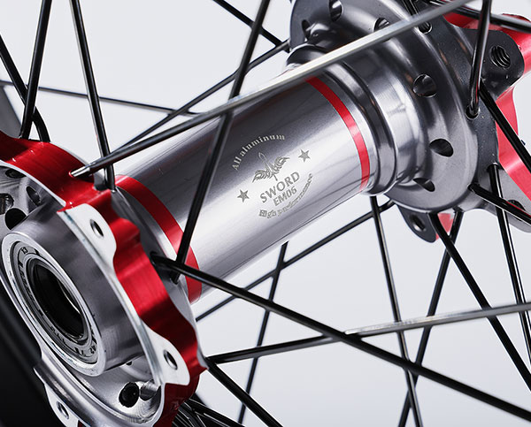 材质:7116AL T6,前轮:19*2.15" / 后轮:18*2.5",高强度铝制轮圈(黑金/黑红/钛红)