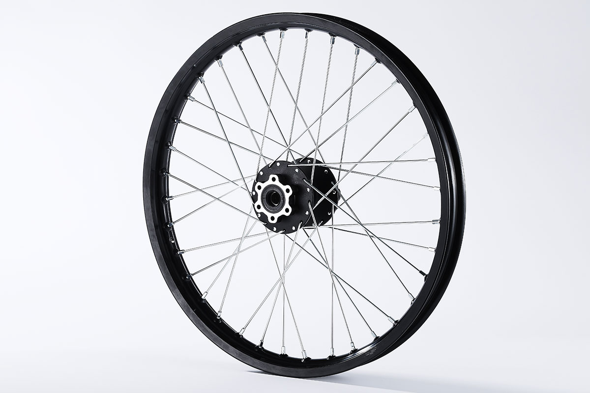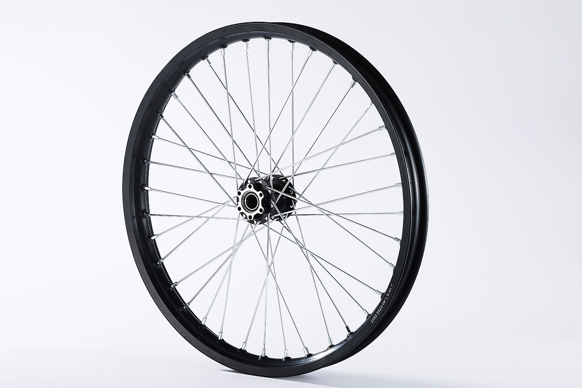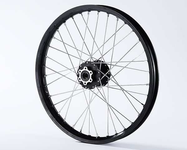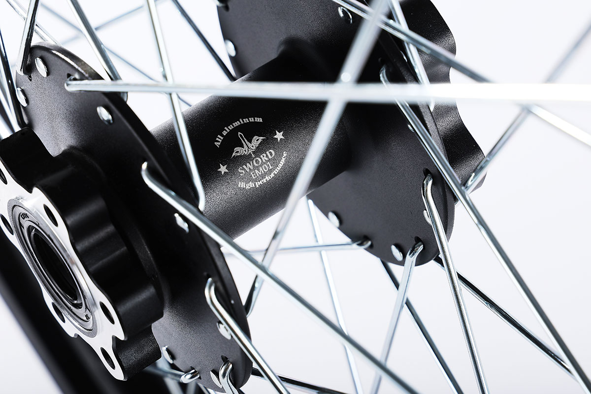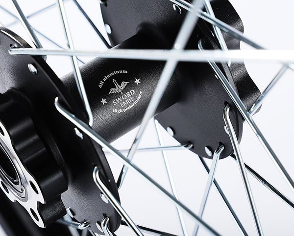 产品名称:双碟刹竞技轮辋总成 车圈:材质:7116AL T6,前轮:19*1.4"http://后轮:19*1.6",高强度铝制轮圈 花鼓:材质:6061AL T6,前鼓芯:M20*12G*36H(双碟刹设计)//后鼓芯:M15*12G*36H。锻造花鼓 辐条:材质:65MN,过盐雾测试,防氧化涂层 适配车型:虬龙轻蜂(日规)